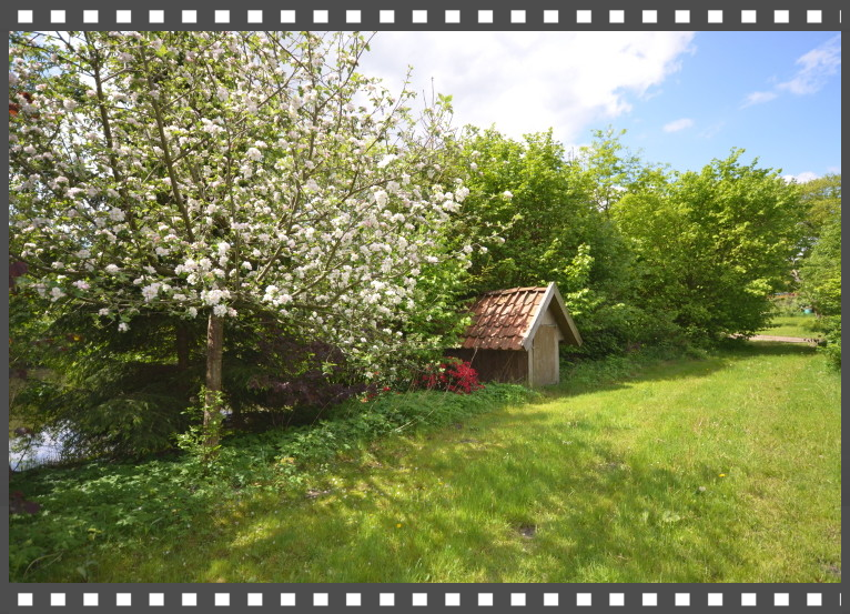 sich schon bald ein Naturparadies entwickelte. Alter Baumbestand, eine große Streuobstwiese, der Hofgarten mit historischen Nutzpflanzen, ein Erdkeiler und kleine Feuchtbiotope ergänzen den