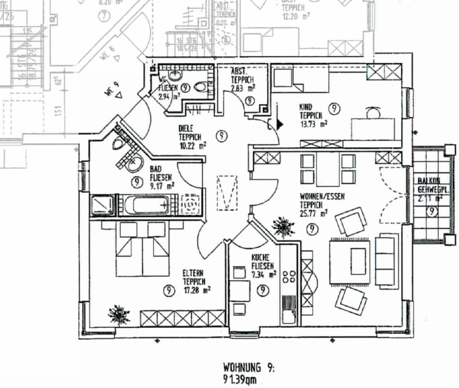 Gesamt: ca. 91,39 m² Wohnfläche