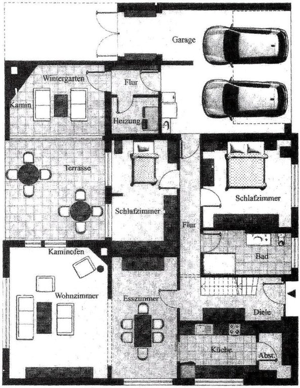 - ca. 22 m² Nutzfläche (Garage mit angrenzenden Bereichen, Heizungsraum, Gartenhäuschen, überdachter Kaminholzlagerplatz)