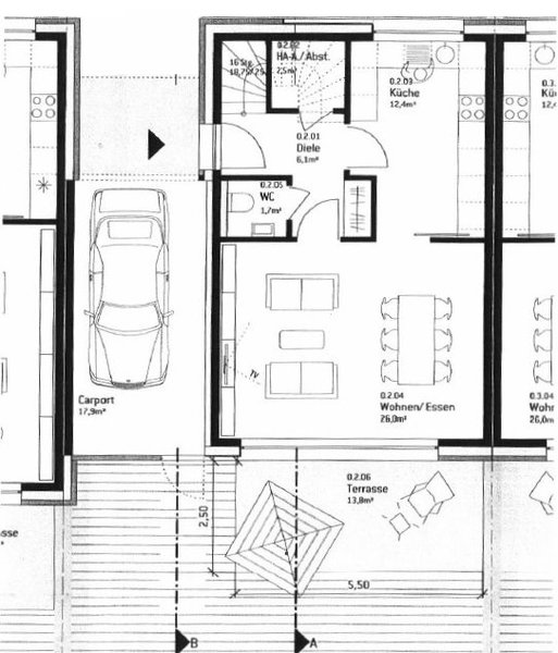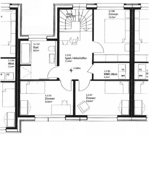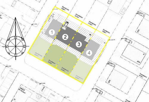 Der Grundriss der mittleren Stadthäuser (HS 2 + 3):
