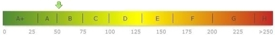 - Endenergiebedarf: 53,5 kWh/(m²*a), Energieverbrauch für Warmwasser ist enthalten, KfW55-Standard