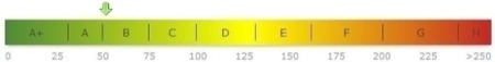 - Endenergiebedarf: 50,7 kWh/(m²*a), Energieverbrauch für Warmwasser ist enthalten, KfW70-Standard