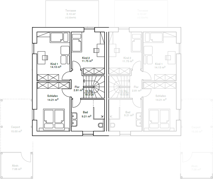 Die Grundrisse und Ausrichtung der Haushälften 1 + 1a: