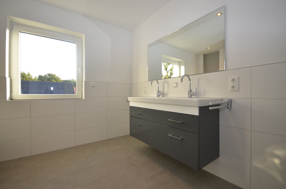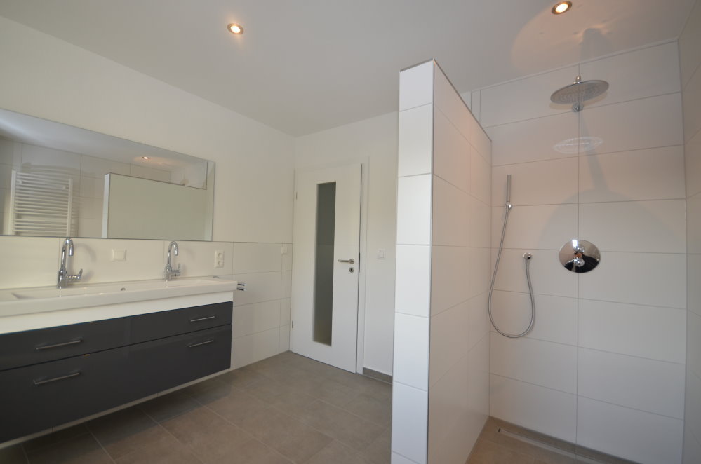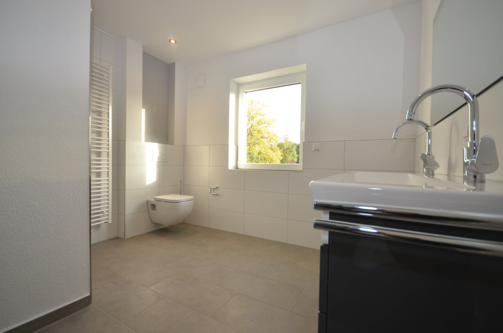 - Für Bad und Gäste-WC hochwertige Wand- und Bodenfliesen mit Sockelfliesen einschließlich Fliesenspiegel in der Küche
