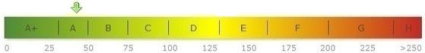 - Endenergiebedarf: 46,4 kWh/(m²*a), Energieverbrauch für Warmwasser ist enthalten, KfW55-Standard