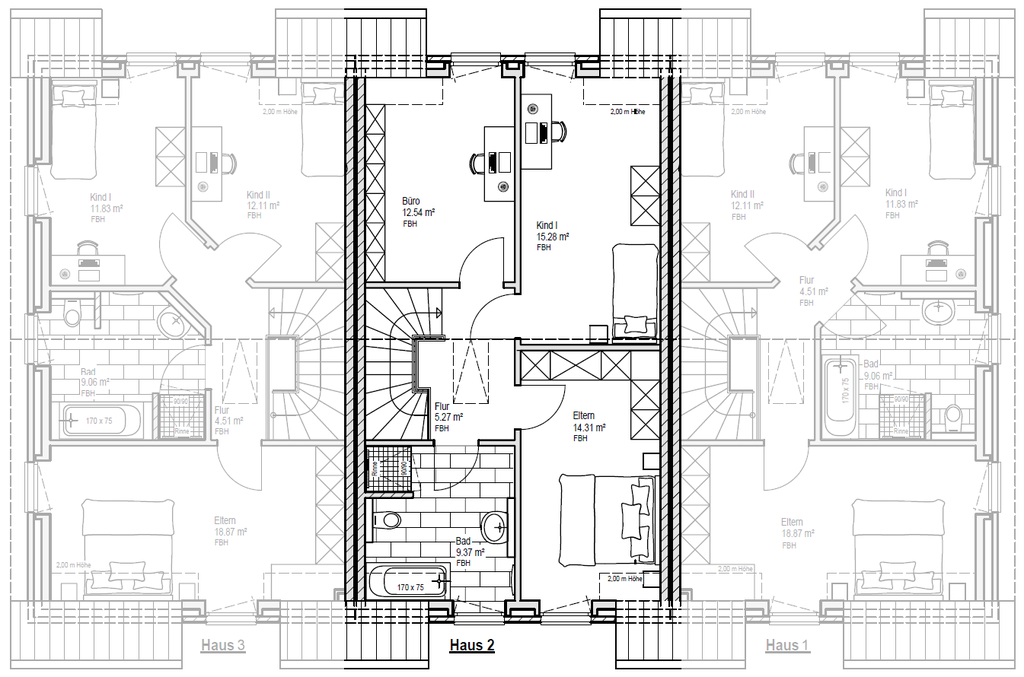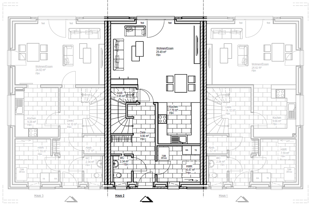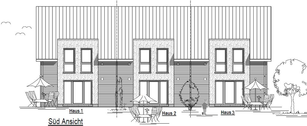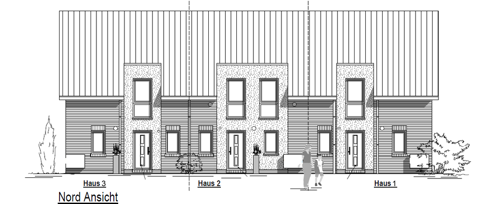Gebäude-Ansichten der Stadthäuser 1, 2 und 3:
