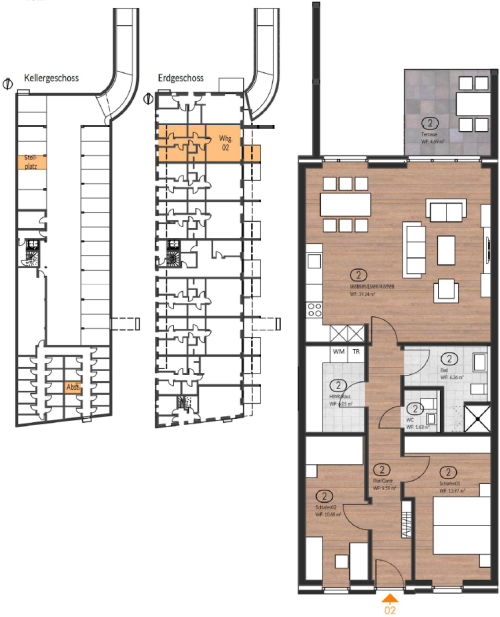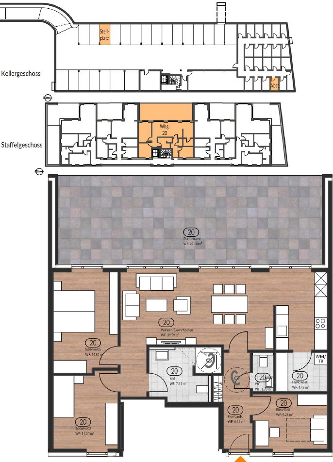 | 19 | 2. OG | 106,68 m² | 6,14 m² | 112,82 m² | 379.900 € | 25.000 € | frei |