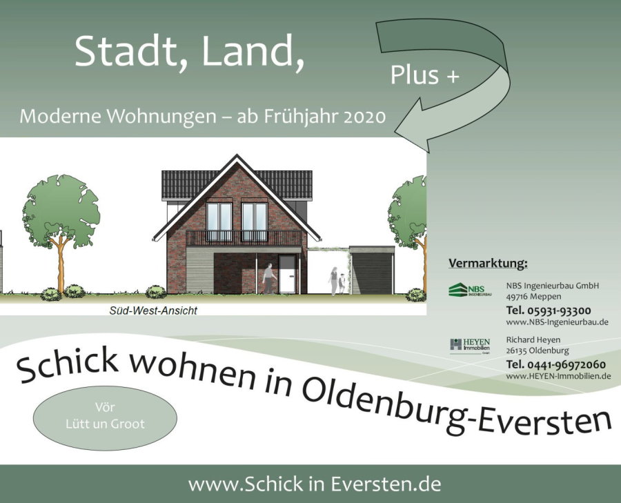 - behagliche Eigentumswohnungen am Rande des Neubaugebiets "Eversten-West-D"