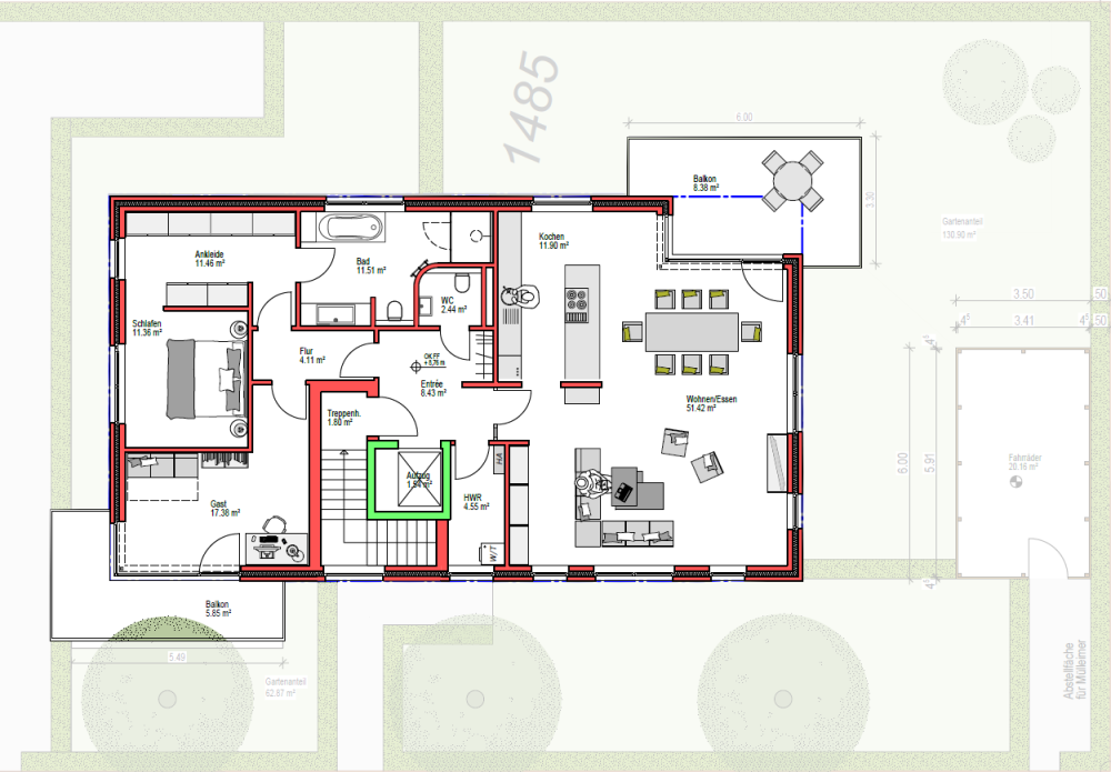 | Wohnen / Essen | 51,42 m² | |||
