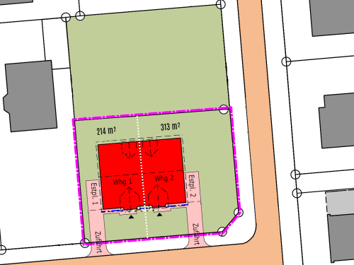| Haushälfte rechts | 313 m² | 108 m² | 414.500 € |