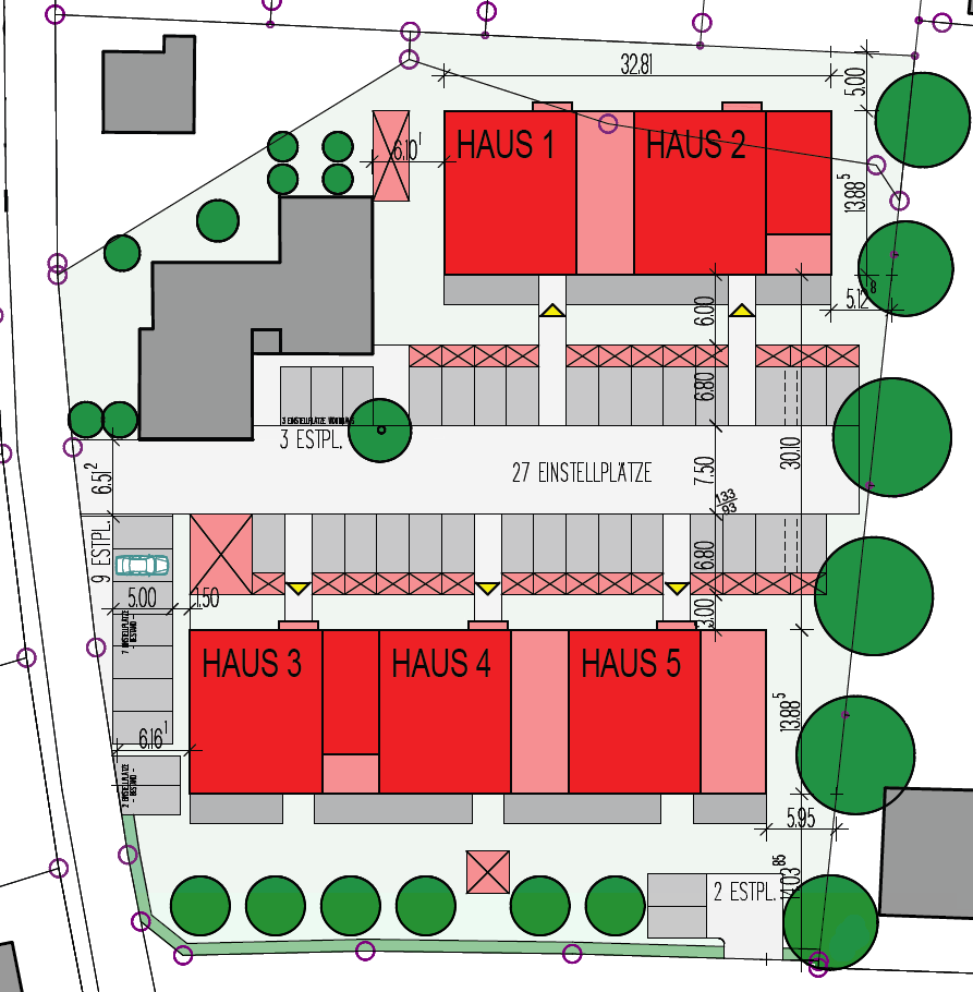 Die Lage der einzelnen Wohnhäuser: