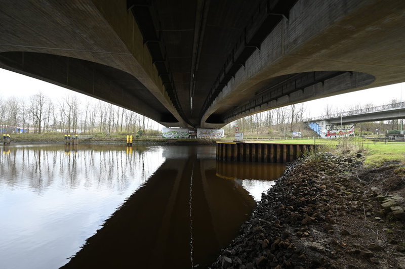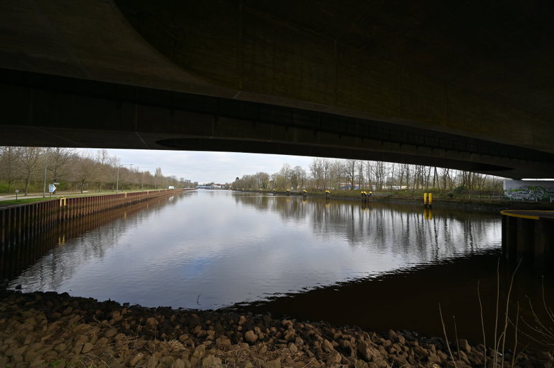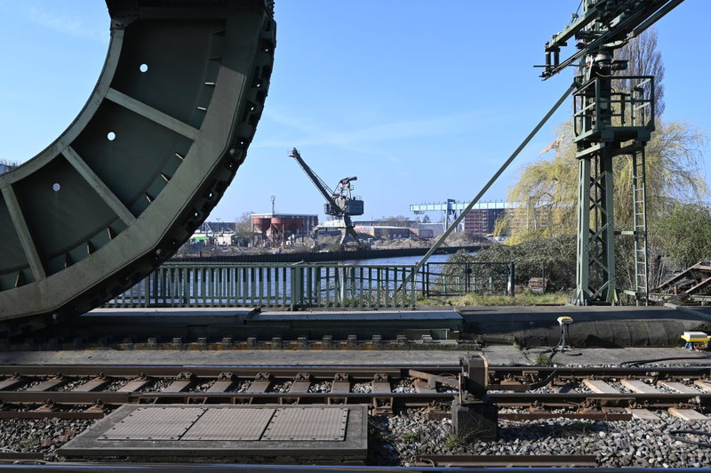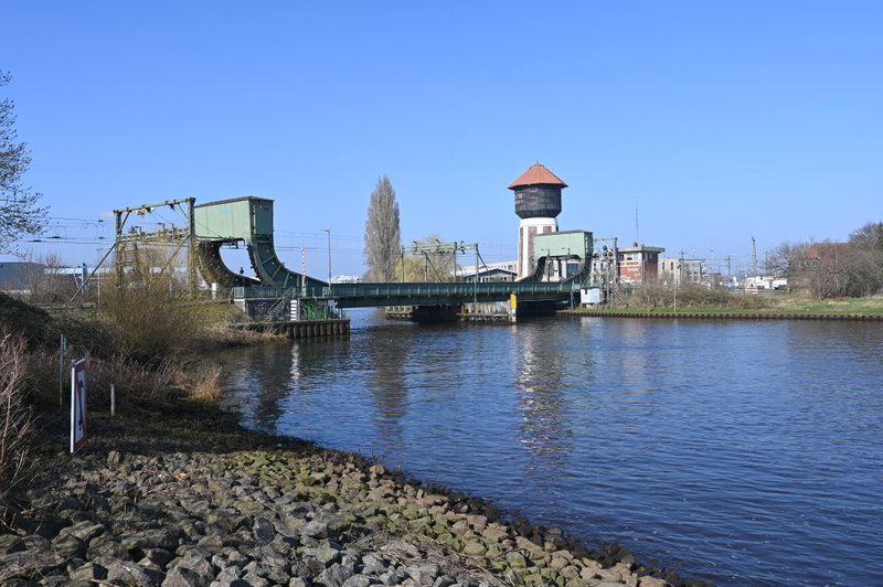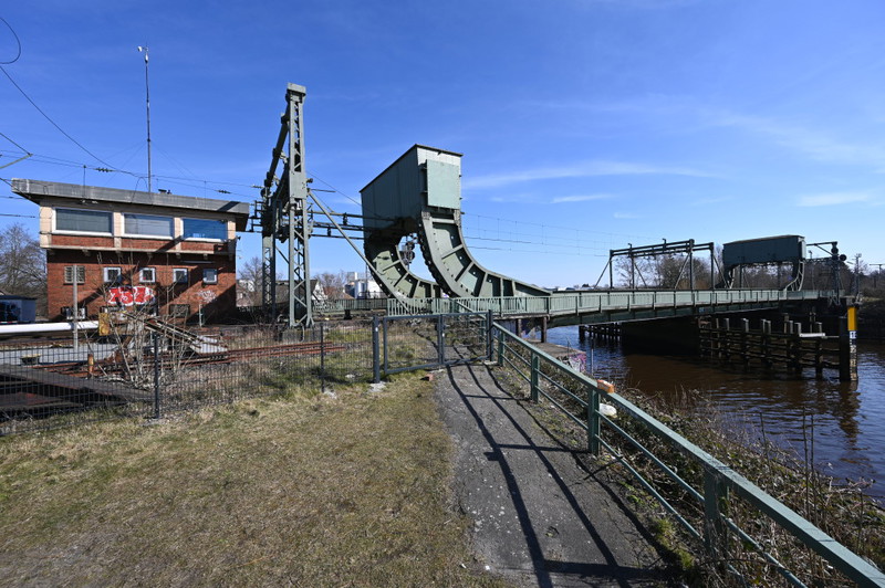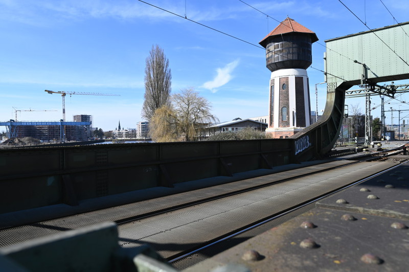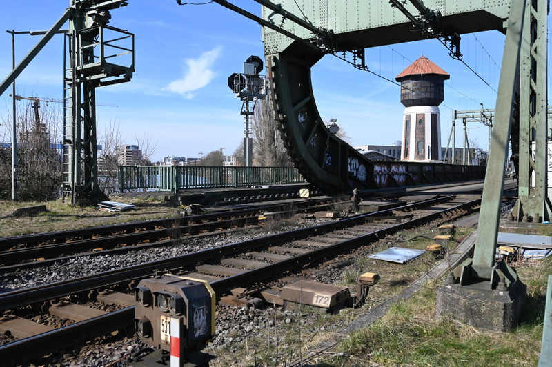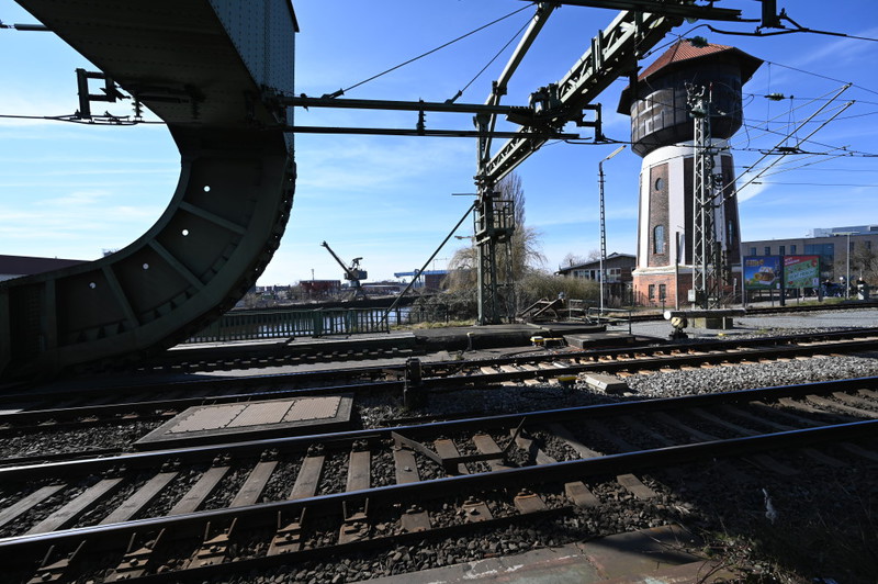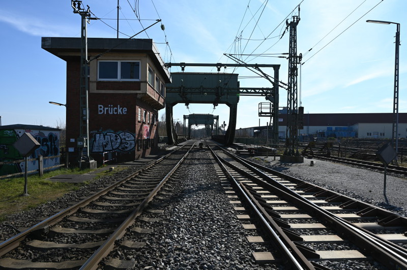˅ Alter Stadthafen | Eisenbahn-Brücke: Gegen 12.00 Uhr am 6. März 2022: