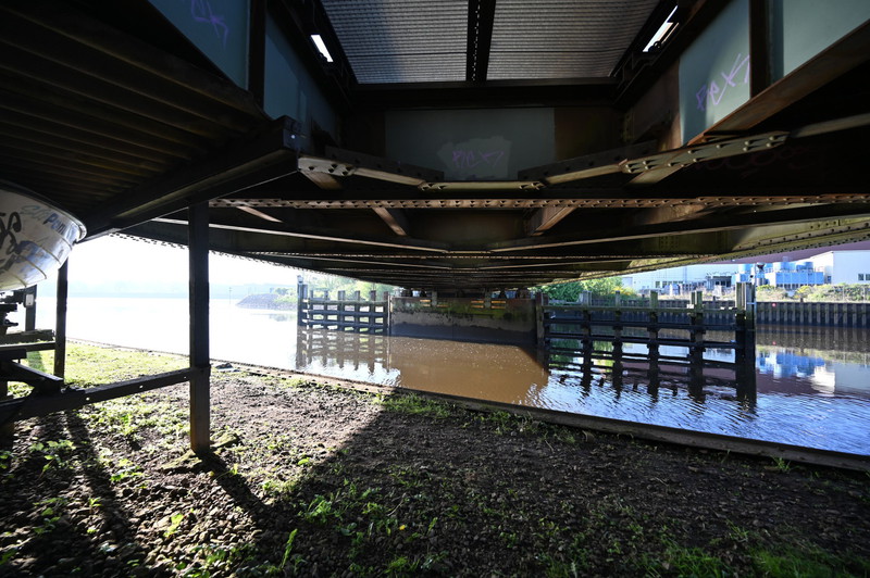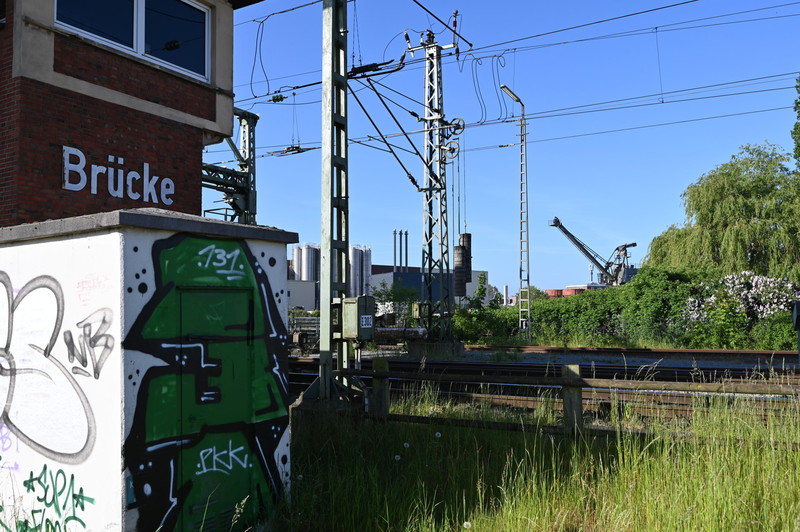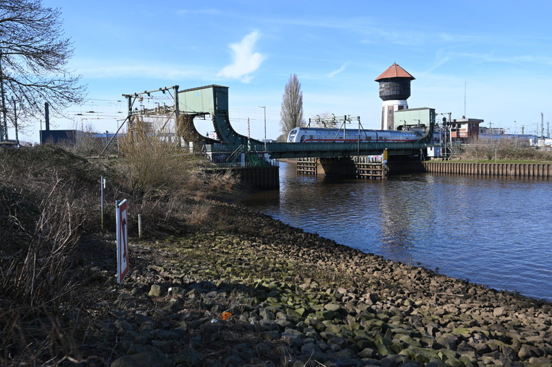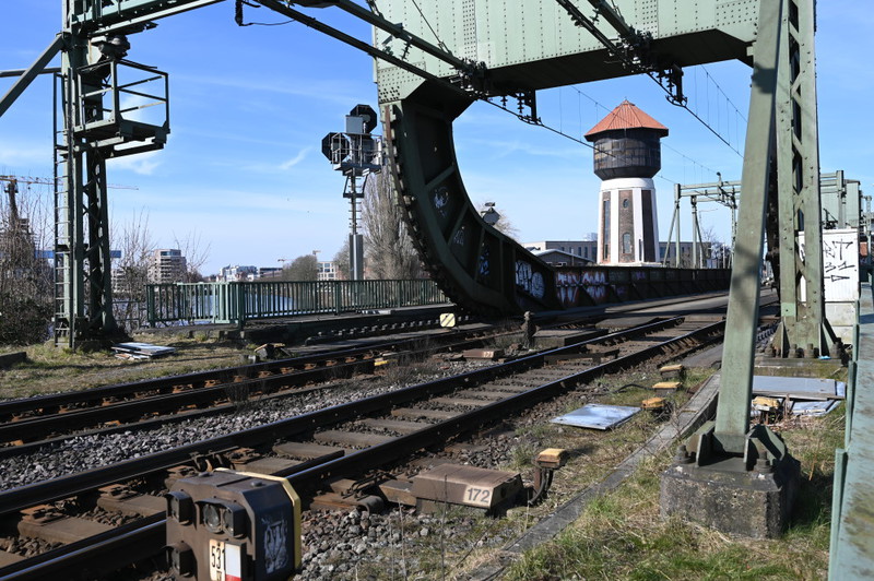 ˅ Alter Stadthafen | Eisenbahn-Brücke: Gegen 13.00 Uhr am 12. März 2022: