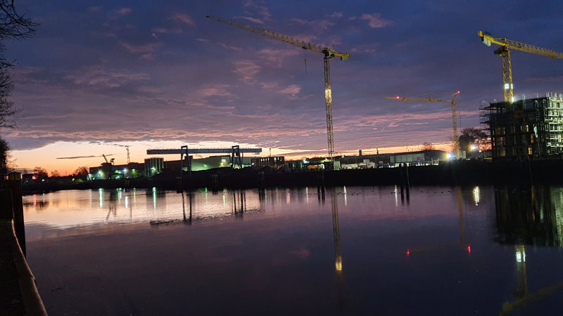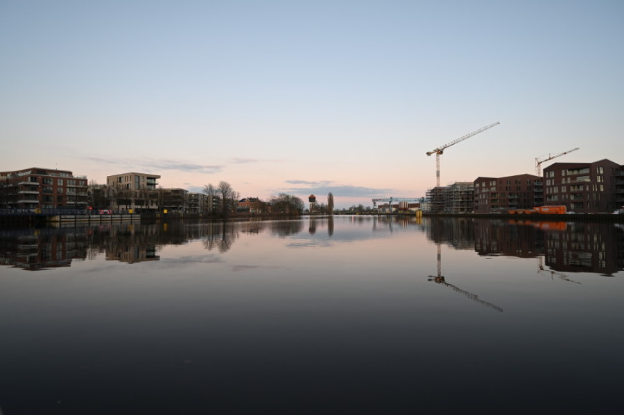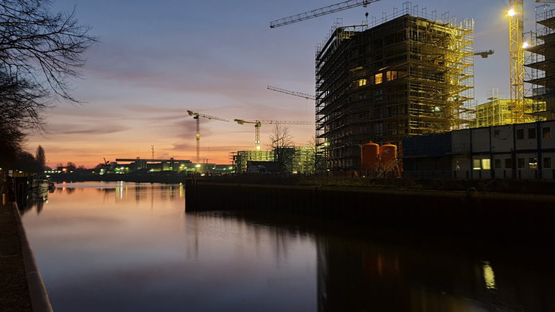 ˅ Alter Stadthafen: Abendstimmung am 5. März 2022:
