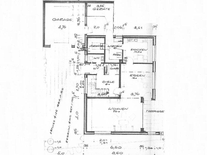 - Nutzfläche: kleiner Kellerraum, Dachboden, Garage mit elektrischem Tor