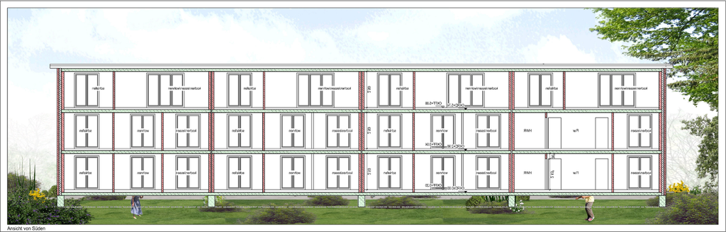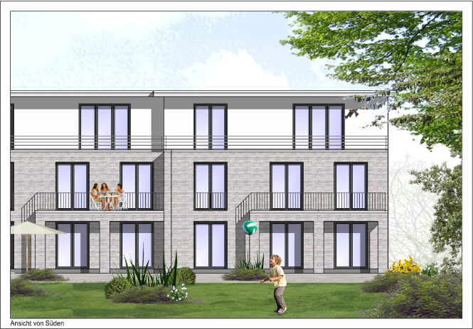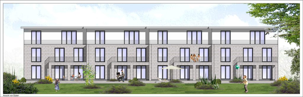 ˄ Die Wohnanlage von der Garten- bzw. Südseite